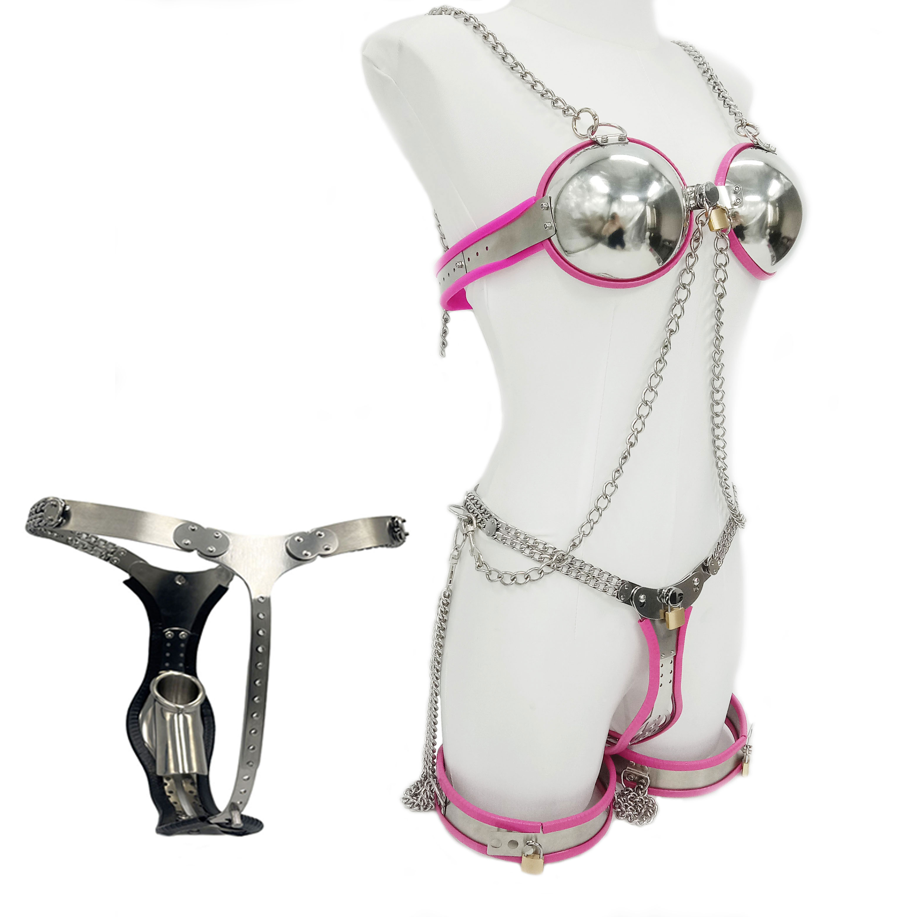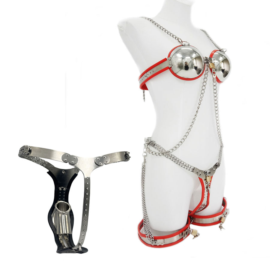 New 2.0 Universal padlock version men's chastity belt fully adjustable + breast exercise garment + improved and enhanced thigh ring